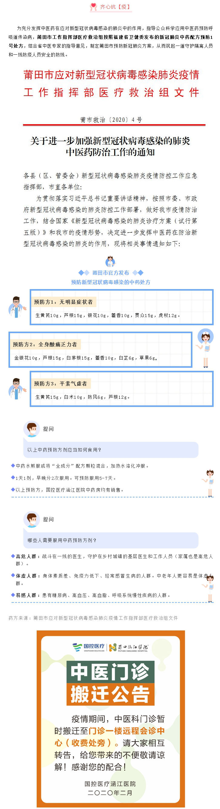 【疫情专栏】来了!莆田市公布新型冠状病毒肺炎中药预防药方